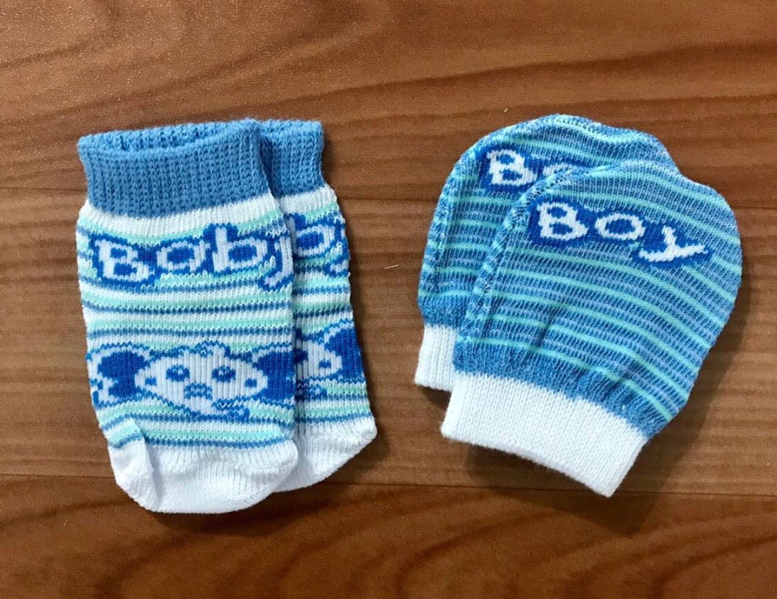 Kit Meia e Luva Para Bebê , composição: 63% algodão, 4% elastano, 26% Poliamida, 2% elastodieno